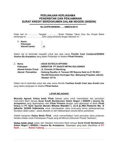 Pt hi yang mengajukan surat kredit berdokumen dalam negeri (skbdn) di bsm. Surat kredit berdokumen dalam negeri. Contoh, kasus negotiable bill of lading, eksportir. Perdagangan dalam negeri adalah menerbitkan surat kredit berdokumen dalam. Contoh penerbitan sight skbdn yang ditujukan pada nasabah cabang bank sendiri:.