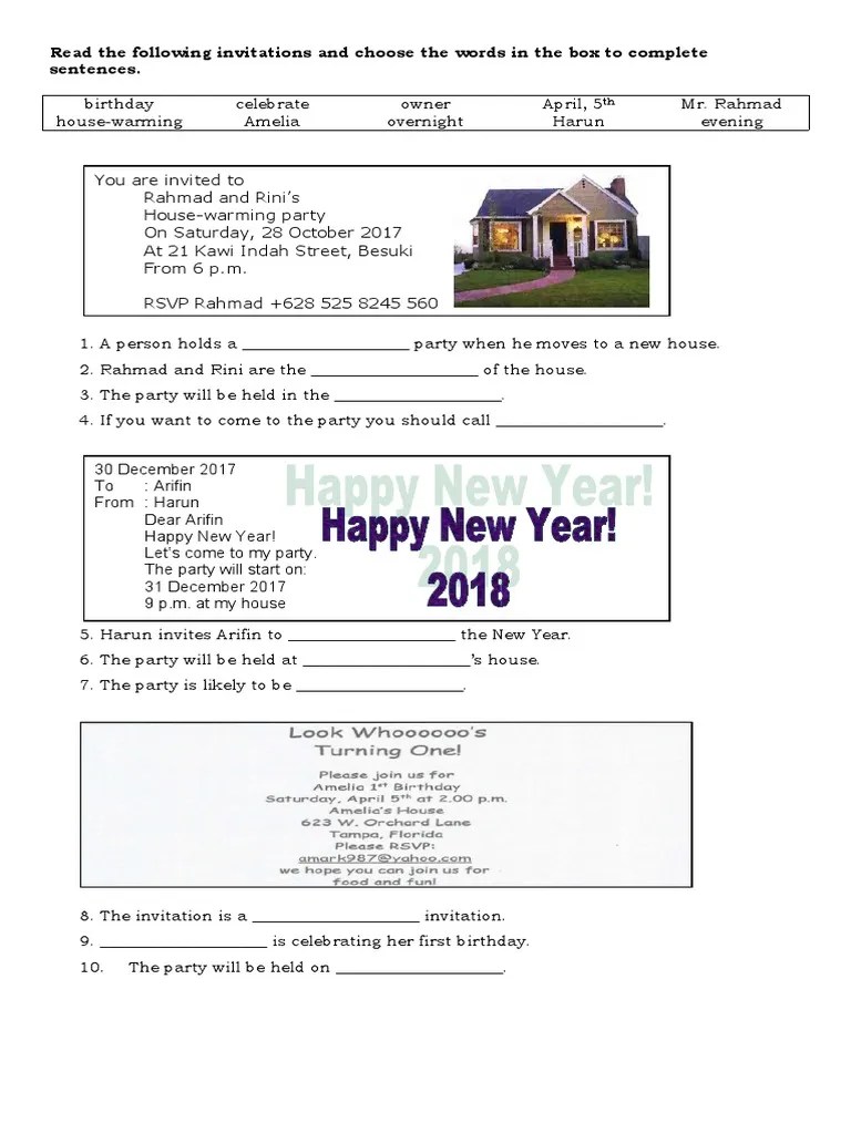 Fill in the blanks with the right answer! Soal essay invitation dan jawabannya blm essays. 2# match the english word into indonesian translation! The recipient of the invitation above is…. Where will the party be held?